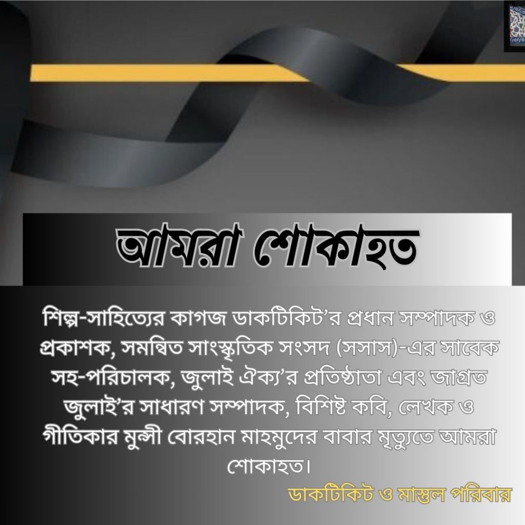 শিল্প-সাহিত্যের কাগজ ডাকটিকিট’র প্রধান সম্পাদক ও প্রকাশক, সমন্বিত সাংস্কৃতিক সংসদ (সসাস)-এর সাবেক সহ-পরিচালক, জুলাই ঐক্য’র প্রতিষ্ঠাতা এবং জাগ্রত জুলাই’র সাধারণ […]